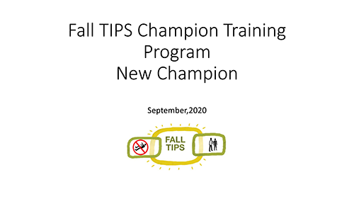 Open in HealthstreamThis 45-minute video is a recording from a previous Fall TIPS Webinar. The purpose of this webinar is to review the evidence behind Fall TIPS, how to use the Morse Falls Scale to conduct a fall risk assessment, and the Fall TIPS auditing process.