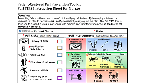 View StrategiesThe Fall TIPS tool is designed to support nurses in partnering with patients and their family members in the 3-step fall prevention process.